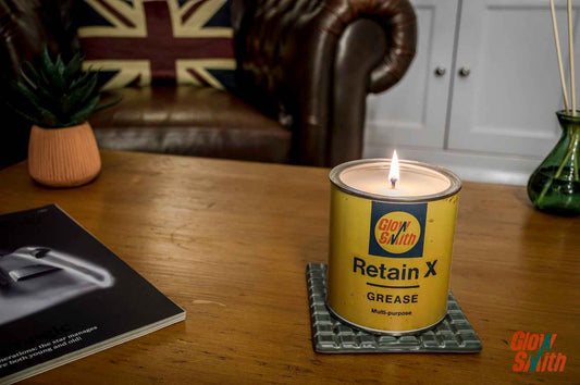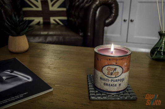 Grease Tin Candles - Vintage Automotive ArtCrafted with a strong appreciation for British automotive heritage, our Grease Tin...