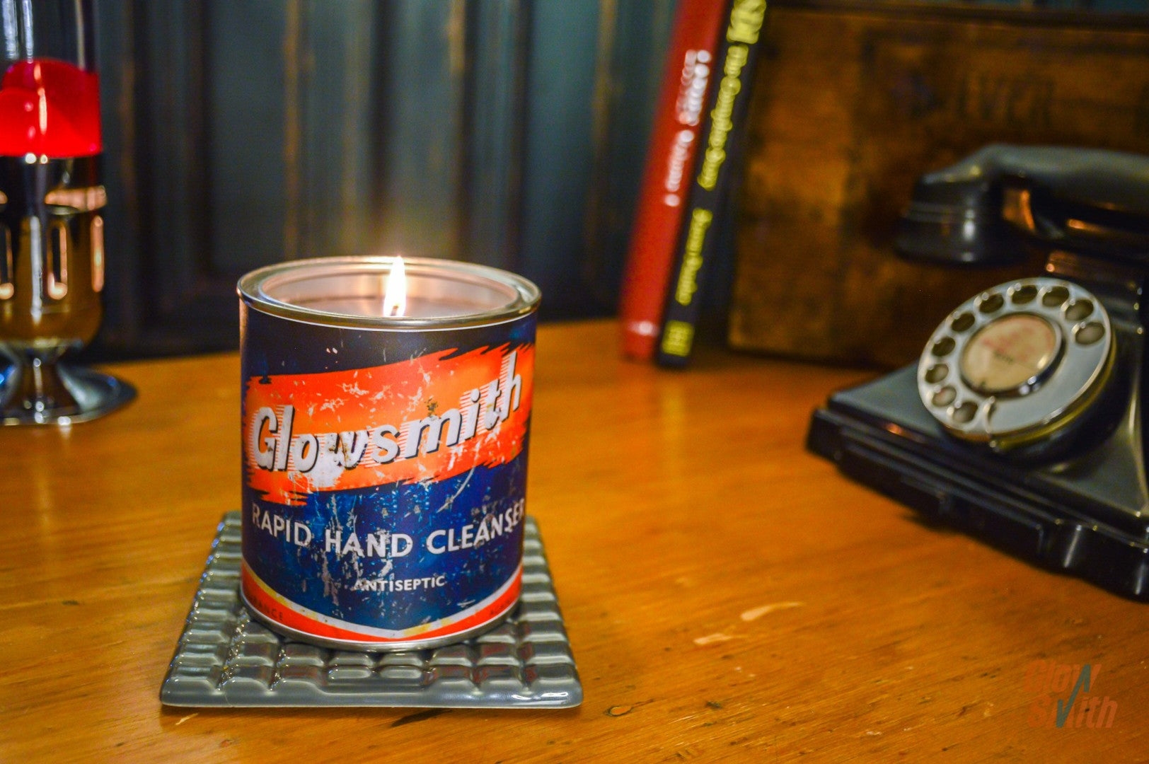 Inspired by classic automotive grease tins from the 1950s, each tin features authentic patina details and is hand-poured with Glowsmith’s signature wax blend. Perfect for man caves, home offices, or industrial-style living rooms, this candle adds a vibrant, warming presence wherever it is displayed